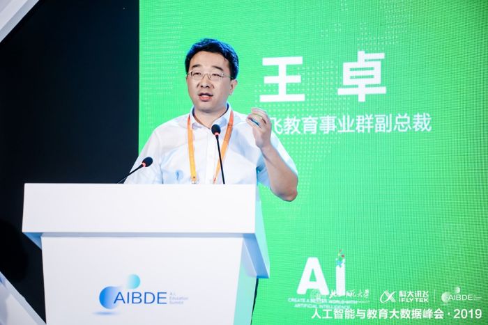 科大讯飞教育事业群副总裁王卓做了题为《人工智能技术在教育教学领域的实践影响》的报告,人工智能分为三个层次:计算智能、感知智能、认知智能,通过人工智能与教育大数据的结合,将构建智慧教育体系,其中数据是基础、平台是支撑、分析是核心、服务是根本、效益是必然。人工智能对教育教学领域的影响可以概括为考试中题目批改与口语测评,教学中的学情画像、随堂评测以及AI课堂实录,智能批改来减轻教师批改负担,个性化学习突破千人一面作业的瓶颈以及基于人工智能规划个性化学习路径和学习推荐等,而AI创新教育则是为学生提供唾手可得的人工智能学习工具,实现对AI的创新实践应用。