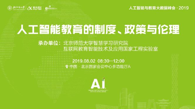 2019年8月1日-2日,由北京师范大学与科大讯飞联合举办的人工智能与教育大数据峰会在北京国家会议中心召开。其中由北京师范大学智慧学习研究院和互联网教育智能技术及应用国家工程实验室承办的分论坛四“人工智能教育的制度、政策与伦理”于2日上午在国家会议中心多功能厅A成功举办。